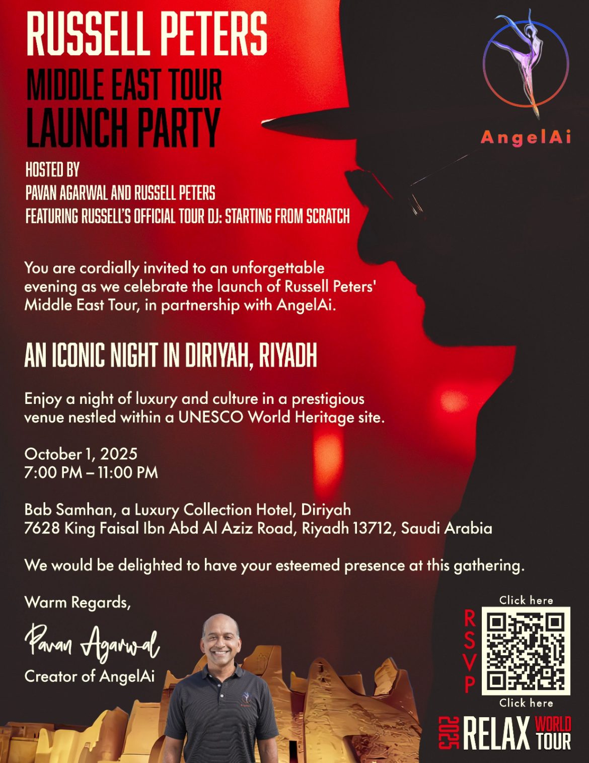 To mark this milestone, AngelAi will host an unforgettable launch celebration in Diriyah, Riyadh—a UNESCO World Heritage site and symbol of Saudi Arabia’s cultural renaissance. The event will feature global comedy icon Russell Peters and bring together financial leaders, investors, and innovators for an evening of luxury, laughter, and strategic dialogue. The setting reflected AngelAi’s commitment to blending tradition with technology, and its belief that financial growth must be rooted in trust, empathy, and shared values.
